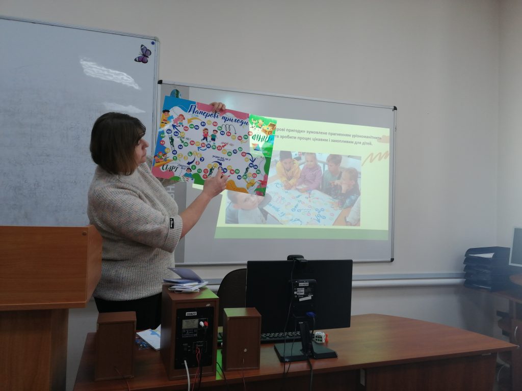 Своїми напрацюваннями  з питання «Настільні ігри – новий формат подолання освітніх втрат на заняттях гуртка “Оригамі” поділилася Галина Василівна Остапенко, заввідділом ВПДЮ ім. Лялі Ратушної.